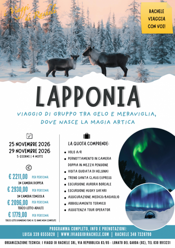 Un viaggio incantato tra la vibrante Helsinki e la magia della Lapponia. Dal suggestivo Santa Claus Express fino a Rovaniemi, tra husky safari, villaggio di Babbo Natale e notti sotto l’aurora boreale.